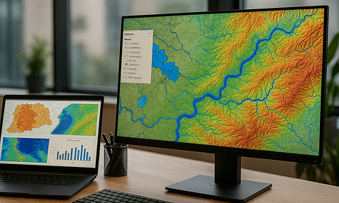 지형, 토지이용, 수문자료 등 공간정보를 정량화하여 하천 주변의 통계적 특성과 경계를 분석합니다. 유역 특성 파악과 수리·수문 모델의 기초 자료로 활용됩니다.
