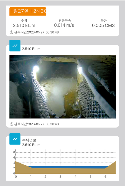 | 현장계측 | 1 | 유속분포 | 비접촉식 | 실시간 | 유선 | 횡분포 유속 필수 제공 |